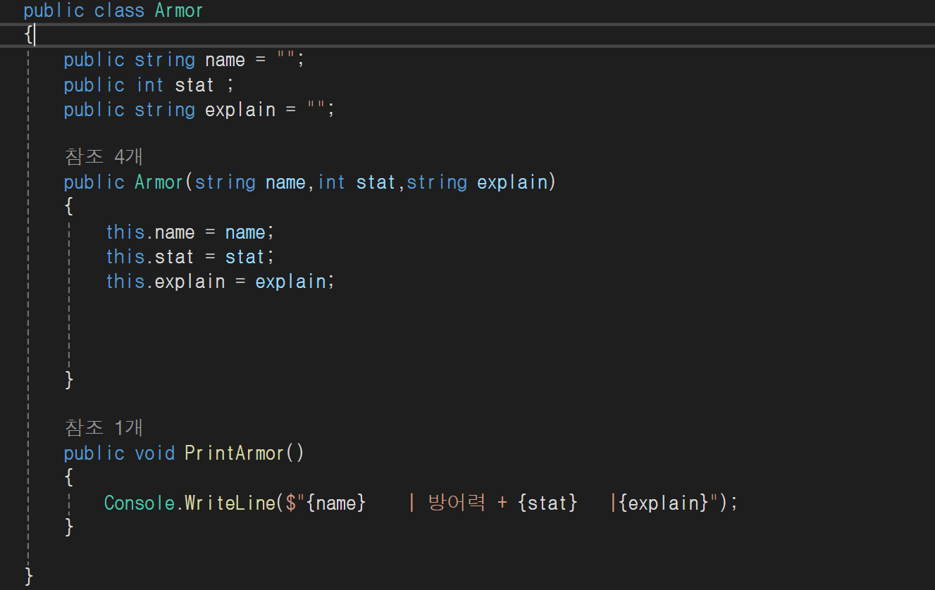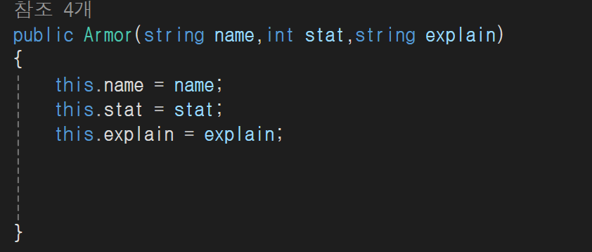 실행부를 만들어주고 (클래스와 이름 동일하게) 매개변수에 변수들에 집어넣어질 값을 변수 갯수만큼 지정해줍니다.