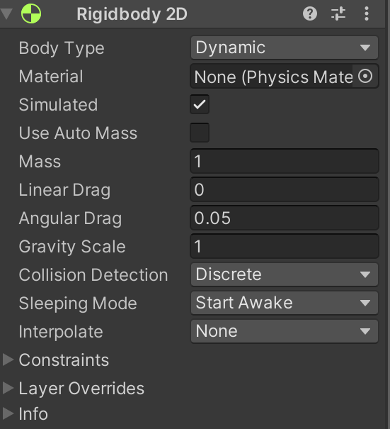 Rigidbody2D는 2D 게임에서 유니티 내부의 물리엔진을 기반으로 움직임을 나타내는 용도입니다.